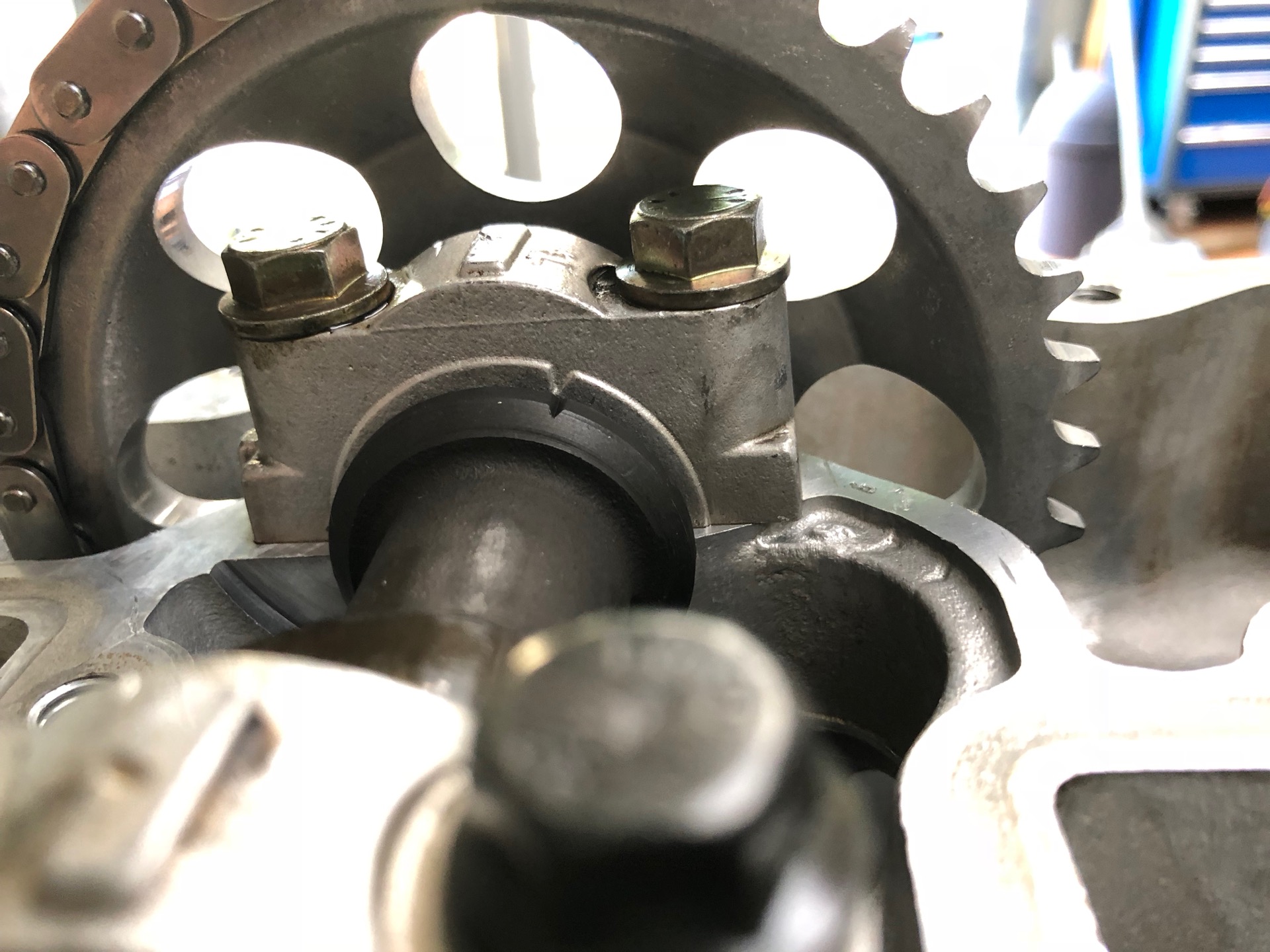 And the cause? There seems to be a bit of wiggle room between the sprocket and the end of the intake camshaft. Maybe the little guide/orientation notch has worn a bit? I have a spare cylinder head that I could pull a camshaft from. But I think perhaps I'll leave it and get T5 cams later.