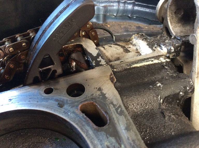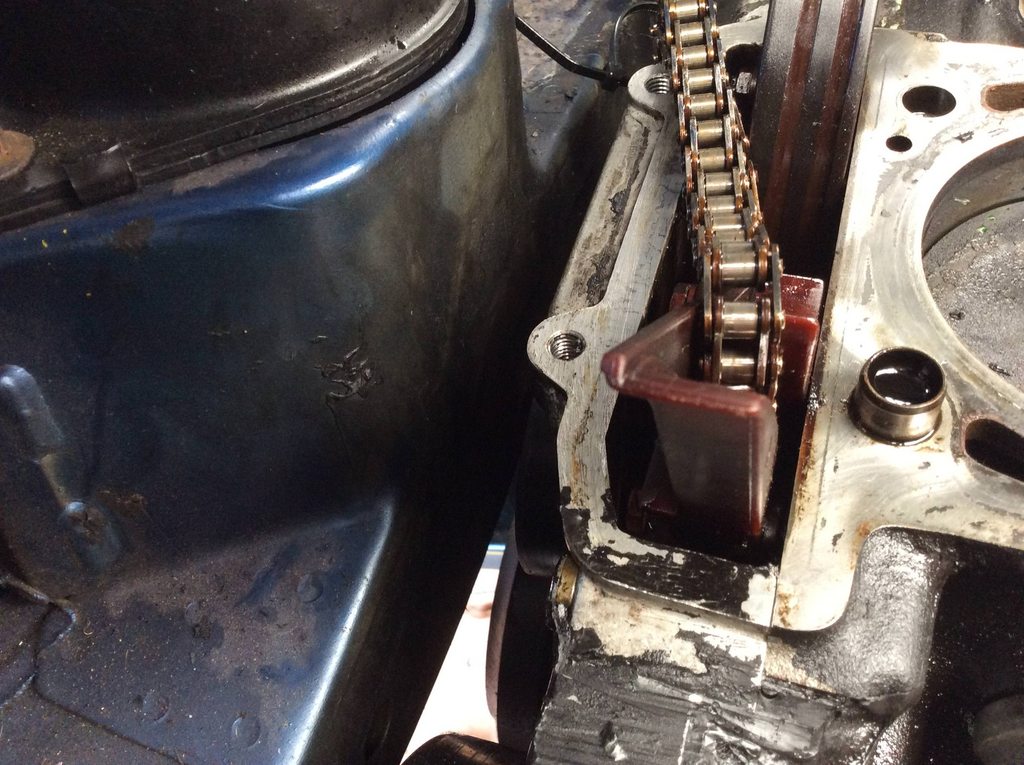 The head felt way over-torqued to compensate. You can now see there's a broken timing chain guide in the first photo. I think it was on the way out and I just upset it when i turned the engine over by hand with the tensioner out.